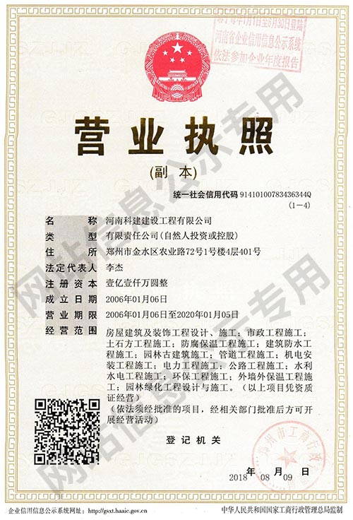 河南科建建設(shè)工程有限公司是一家以房屋建筑、建筑裝飾、建材貿(mào)易及大型建筑機(jī)械設(shè)備租賃為主營業(yè)務(wù)的成長型企業(yè)。擁有建筑工程總承包壹級資質(zhì),裝飾裝修、防水防腐保溫等專業(yè)承包壹級資質(zhì),注冊資本1.1億元。